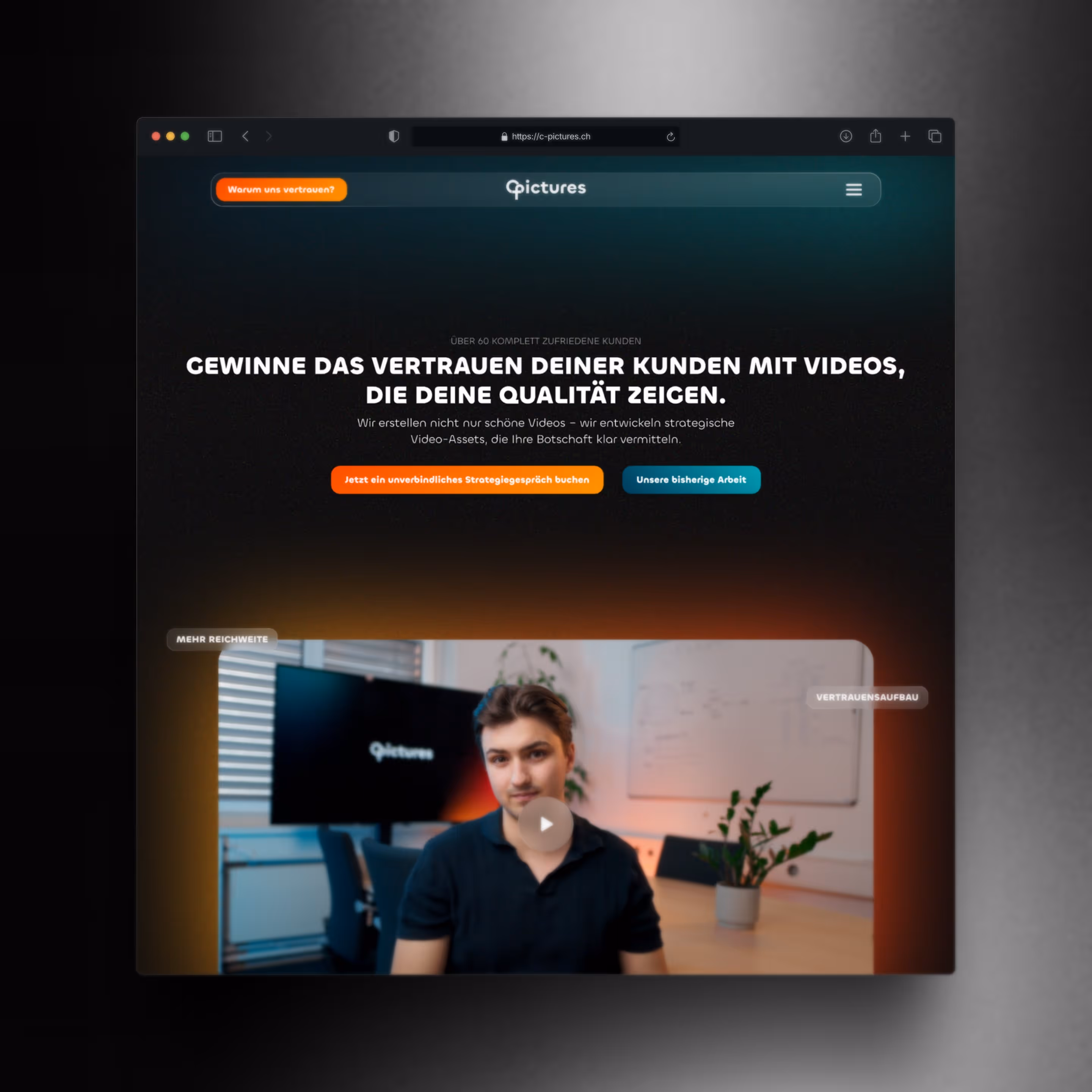 Gemeinsam mit dem Gründer von C-Pictures haben wir eine neue Website entwickelt, die mehr ist als nur eine digitale Visitenkarte. Basierend auf einer durchdachten Markenstrategie entstand ein Auftritt, der die Kreativität, Authentizität und christlich geprägte Haltung von C-Pictures sichtbar macht. Der Fokus lag auf einer klaren Informationsarchitektur, einer emotionalen Bildsprache und einer starken Storyline, die Nutzer intuitiv durch das Angebot führt. Das Resultat: Eine Plattform, die inspiriert, überzeugt – und Kunden dort abholt, wo sie stehen.